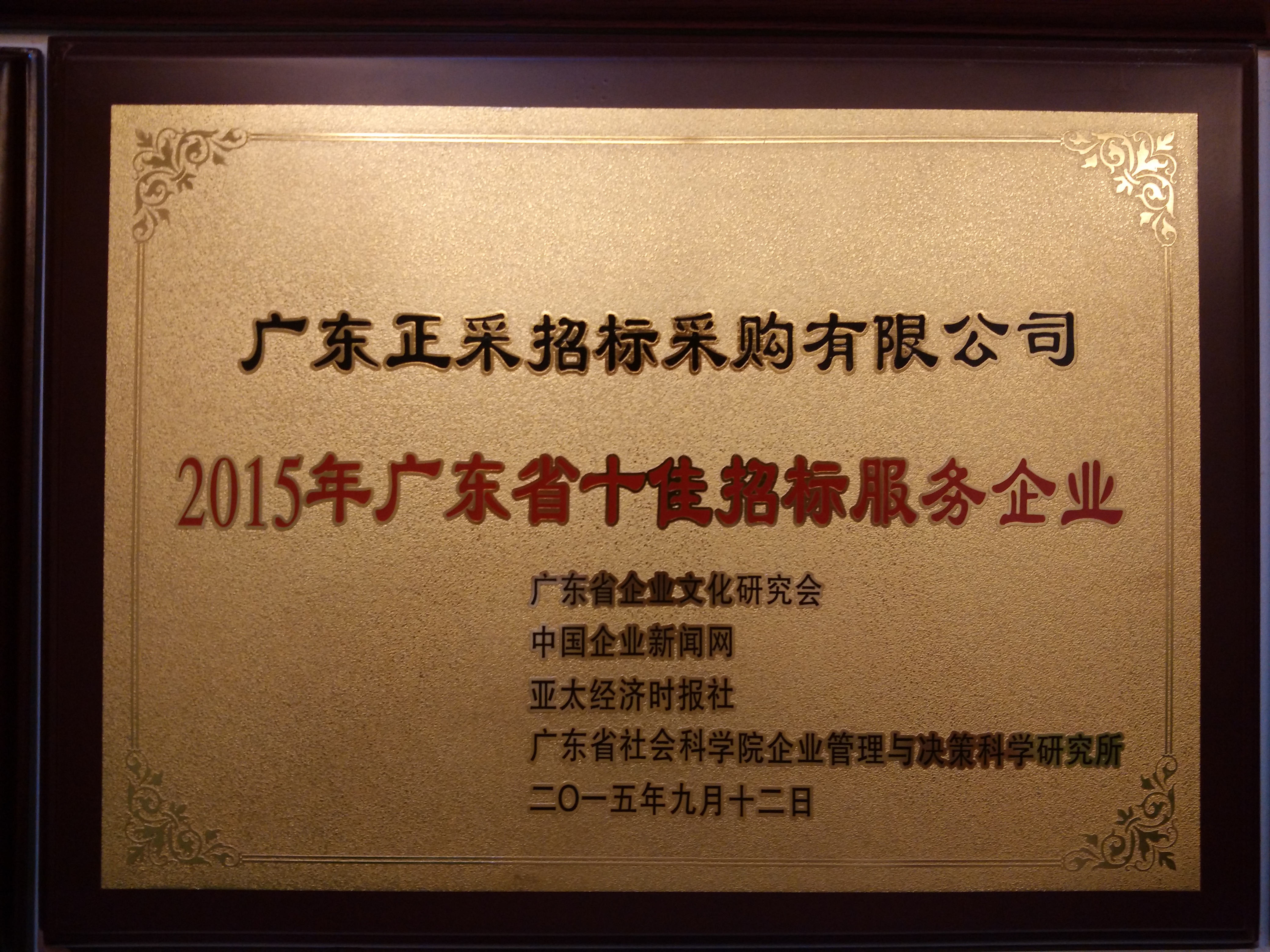 2015年廣東省十佳招標服務企業(yè)